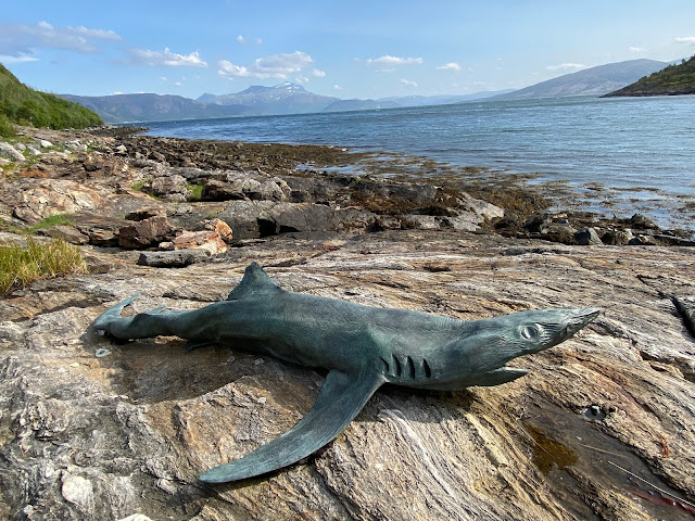 I Vennesund heter kunstverket Hai-Ku-Badekar og kunstneren er Dorothy Cross. Jeg skal ikke en gang prøve å forstå verket, som er tredelt og består av en hai, et kujur og et badekar.