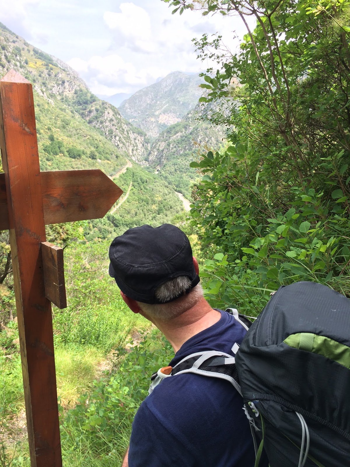 Den videre veien etter tunnelen var litt dårlig merket og vi presterte å gå feil. Det ble tre kilometer ekstra. Vi hadde nok håpet på en litt lettere dag, men det ble mye opp og ned flere ganger utover dagen. Saorge ligger på 500 m.o.h. på det laveste underveis var vi på 318 m.o.h. og det høyeste 660 m.o.h.