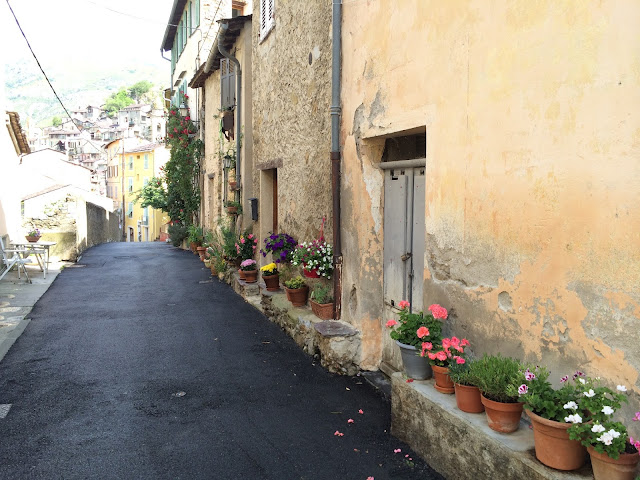 På torget Place Biancheri er mange av husene malt med "trompe l'oeuil" malerier slik som vi så i Tende. "Trompe l'oeuil" betyr noe sånt som "å lure øyet", og det er ikke lett å se om et vindu, eller hva det måtte være, er ekte eller falsk.