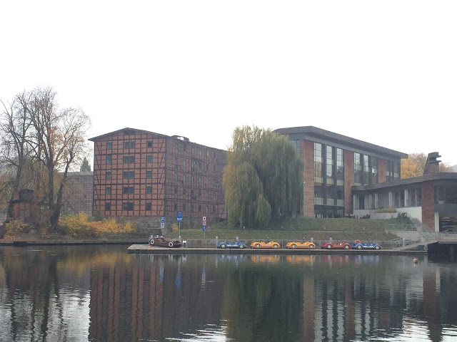 Det skumret da vi var på tur tilbake til toget som skulle ta oss med tilbake til Gdansk. Vi gikk langs elva Brda og passerte en bru som hele tiden skiftet farge. Brua, som heter Most Wladyslawa Jagielly, var for trikk, i tillegg til at den hadde sykkelbane.