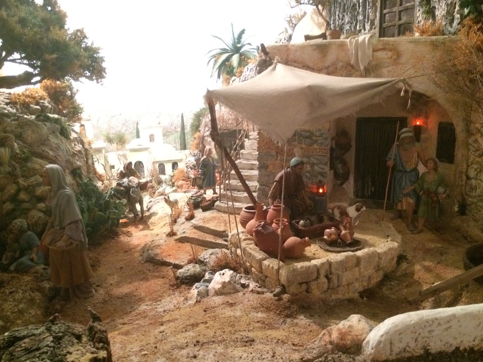 | Ved porten til Betlehem ble de som kom registrert, og øverst til høyre leter Maria og Josef etter et sted å bo. |
