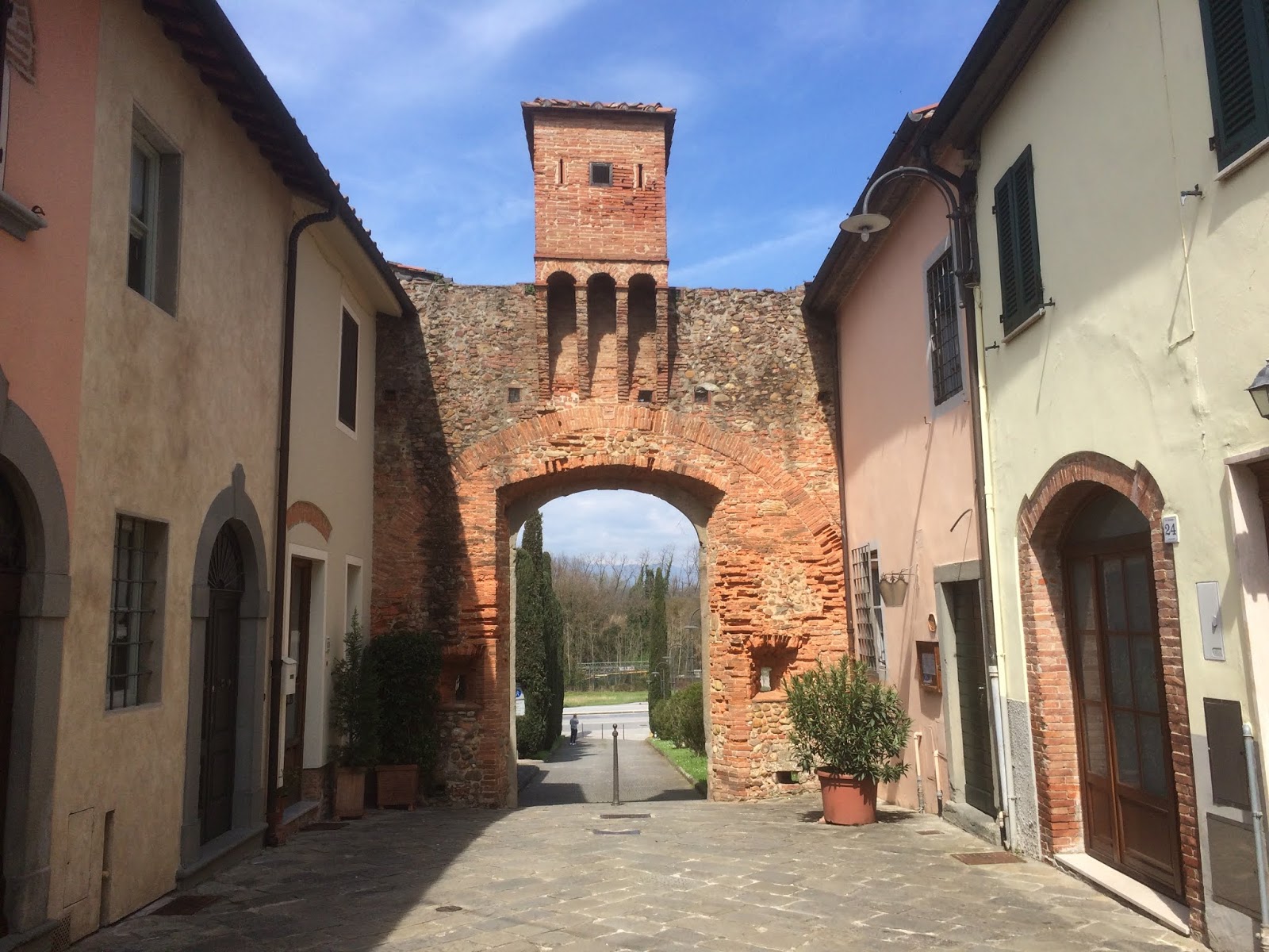Da vi ankom Lucca den 26. dagen på vandring sist høst hadde vi ankommet byen gjennom Porta Donato, en av portene gjennom den massive muren rundt gamlebyen. Nå gikk vi ut gjennom Porta Elisa, på motsatt side av byen.