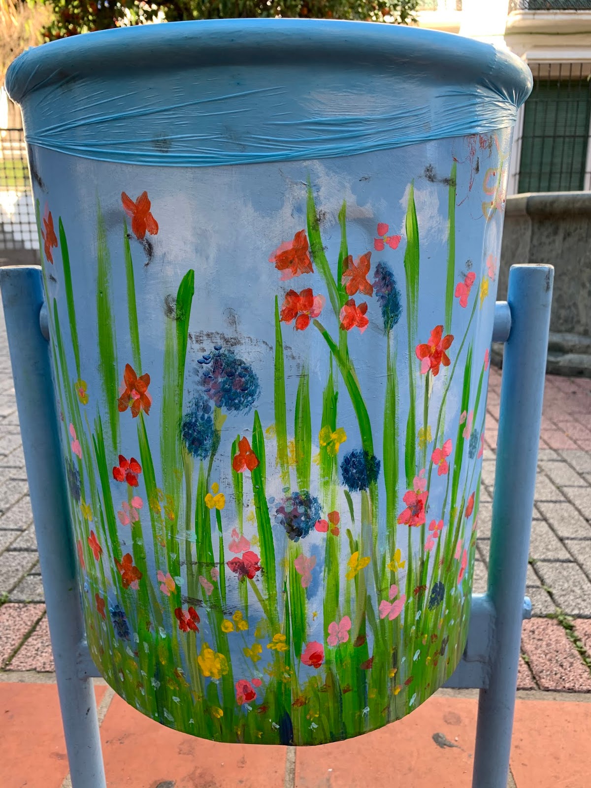Fra Plaza de la Iglesia vandrer vi videre rundt i gamlebyen. Vi legger merke til all dekoren, både på søppeldunker og vegger.