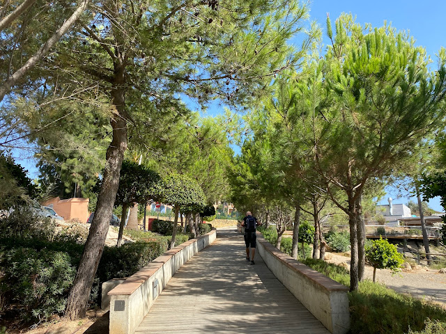 Etter en stund rotet vi oss inn i et bebygget område da vi håpet å komme bort fra stranda litt. Det er ikke alltid like enkelt å finne veien ut av slike områder i Spania ettersom det ikke er uvanlig å "mure seg inn". Vi fikk hjelp til å finne tilbake til stranda av en ung mann som var ute med barnevogn. Vi ble litt overrasket da vi oppdaget at han var norsk.
